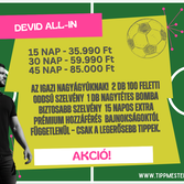 Bajnok vip Dévid nagyszorzós szelvényei : amivel magas profitot tudunk elérni 90 napra : 45.990 ft